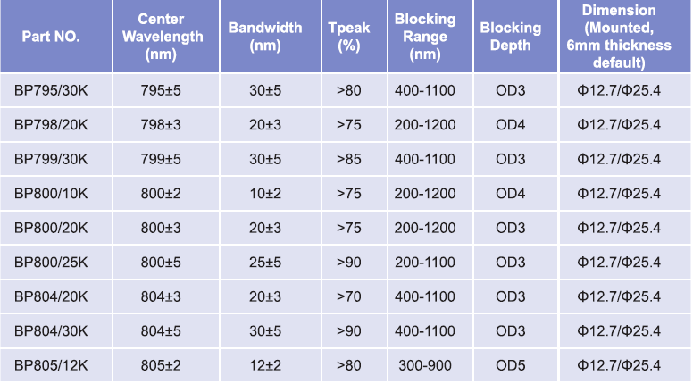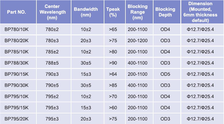 帶通濾光片波長范圍:780nm-795nm