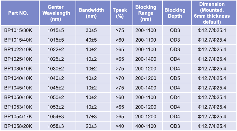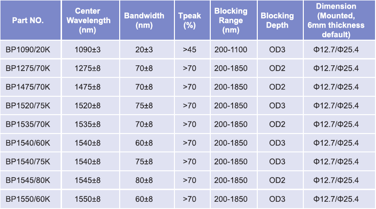4、庫存:上萬種標準及非標準帶通濾光片產(chǎn)品現(xiàn)貨供應