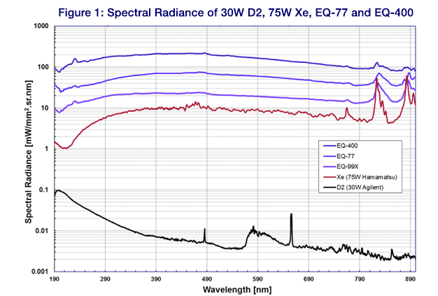 The EQ-99X and EQ-77 covers the range from 170 nm to 2400 nm. Whereas the EQ-99XFC covers