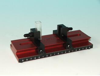 于低吸收率測(cè)量和流動(dòng)樣品池實(shí)驗(yàn)中?勺児獬痰奶匦允蛊鋺(yīng)用非常靈活,如可以作為標(biāo)準(zhǔn)的10mm比色皿支架,也可以作為2mm濾光片支架,或增加光程到160mm。