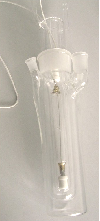 型號:PH225,石英玻璃材質(zhì),用于長弧汞燈的冷卻,可以通除部分紅外光降低熱效應(yīng),磨口60/40,有效長度225mm
