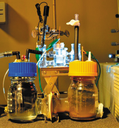 該團(tuán)隊將太陽能電池與微生物燃料電池巧妙地整合在一起,利用太陽能和廢水中的有機(jī)養(yǎng)分生產(chǎn)清潔能源—氫氣。這一新型裝置首先將太陽能轉(zhuǎn)化為電能,然后將電子傳遞給廢水中的微生物使其有足夠的能量分解廢水中的有機(jī)物。其中的一些細(xì)菌在消耗有機(jī)物的同時產(chǎn)生電子,這些電子通過導(dǎo)線被傳回太陽能用以分解水—生成氫氣和氧氣。實驗證明,廢水中2/3的有機(jī)廢物在兩天之內(nèi)就會被分解掉。盡管凈化之后的廢水還不能直接飲用,但是如果將這一成果應(yīng)用于廢水處理廠將使得生活廢水處理過程大幅簡化,更重要的是與此同時大量生產(chǎn)氫氣這一清潔能源。