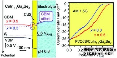 Kazunari Domen教授團(tuán)隊在Energy Environ. Sci.發(fā)文,通過調(diào)控CuIn1-xGaxSe2中 x 的數(shù)值,將獲得的高性能CuIn0.5Ga0.5Se2光陰與BiVO4光陽串聯(lián),獲得了約3.7 %的太陽能轉(zhuǎn)化效率,也是目前的高效率。(上圖,DOI:10.1039/C8EE01783B)