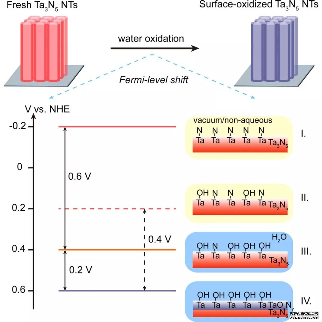 Dunwei Wang課題組在Chem發(fā)文,發(fā)現(xiàn)在光電化學(xué)分解水過程中,Ta3N5的表面會自氧化生成一層非 晶的富氧層,導(dǎo)致費米能級下降,終導(dǎo)致其性能衰減。 因此,對Ta3N5的表面進(jìn)行鈍化處理,不僅能提高性能,對其長期穩(wěn)定性的提高也十分重要。