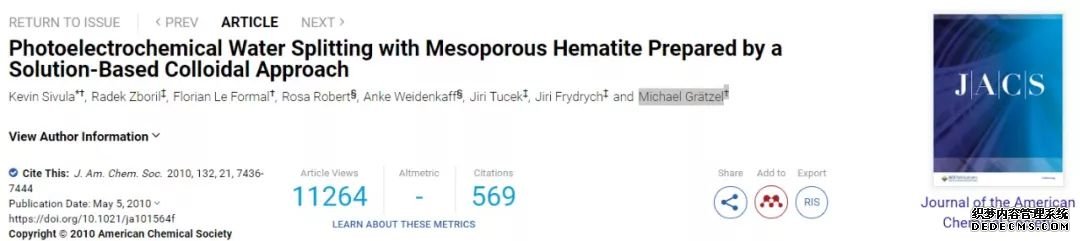 為獲得具有納米結(jié)構(gòu)的Fe2O3,Michael Grätzel課題組在Angew發(fā)表的工作中,通過氣相沉積的方法在FTO上制備了菜花結(jié)構(gòu)的Fe2O3,獲得了當(dāng)時非常高的性能( 3 mA·cm-2@1. 23 V RHE ) 。(DOI:10.1002/anie.201003110)