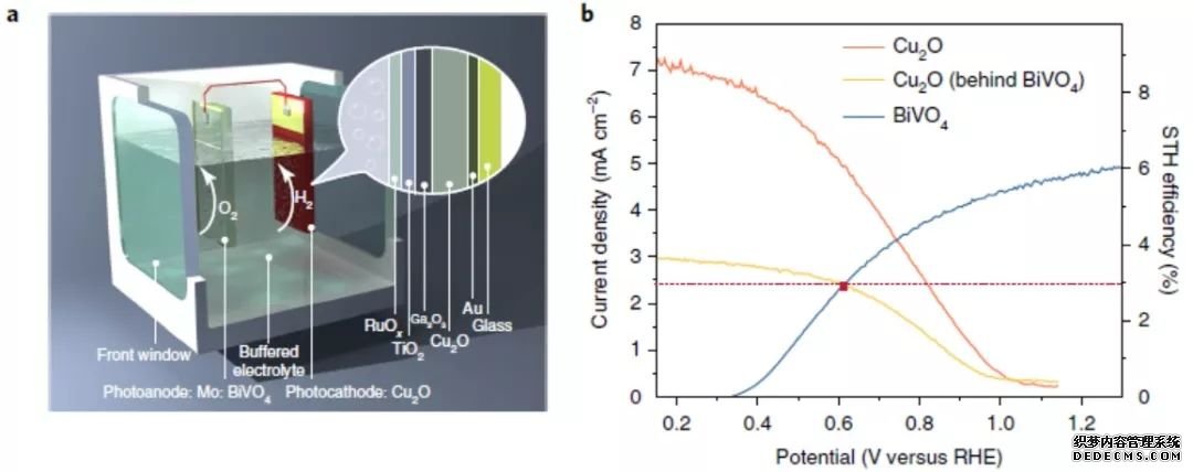 Michael Grätzel.課題組在Nature Catalysis的一篇工作中,利用Cu2O作為光陰,通過Ga2O3、TiO2、NiMo等多層結(jié)構(gòu)調(diào)控后,與BiVO4光陽組成器件,終獲得了約3%的太陽能轉(zhuǎn)化效率;(上圖,DOI:10.1038/s41929-018-0077-6)